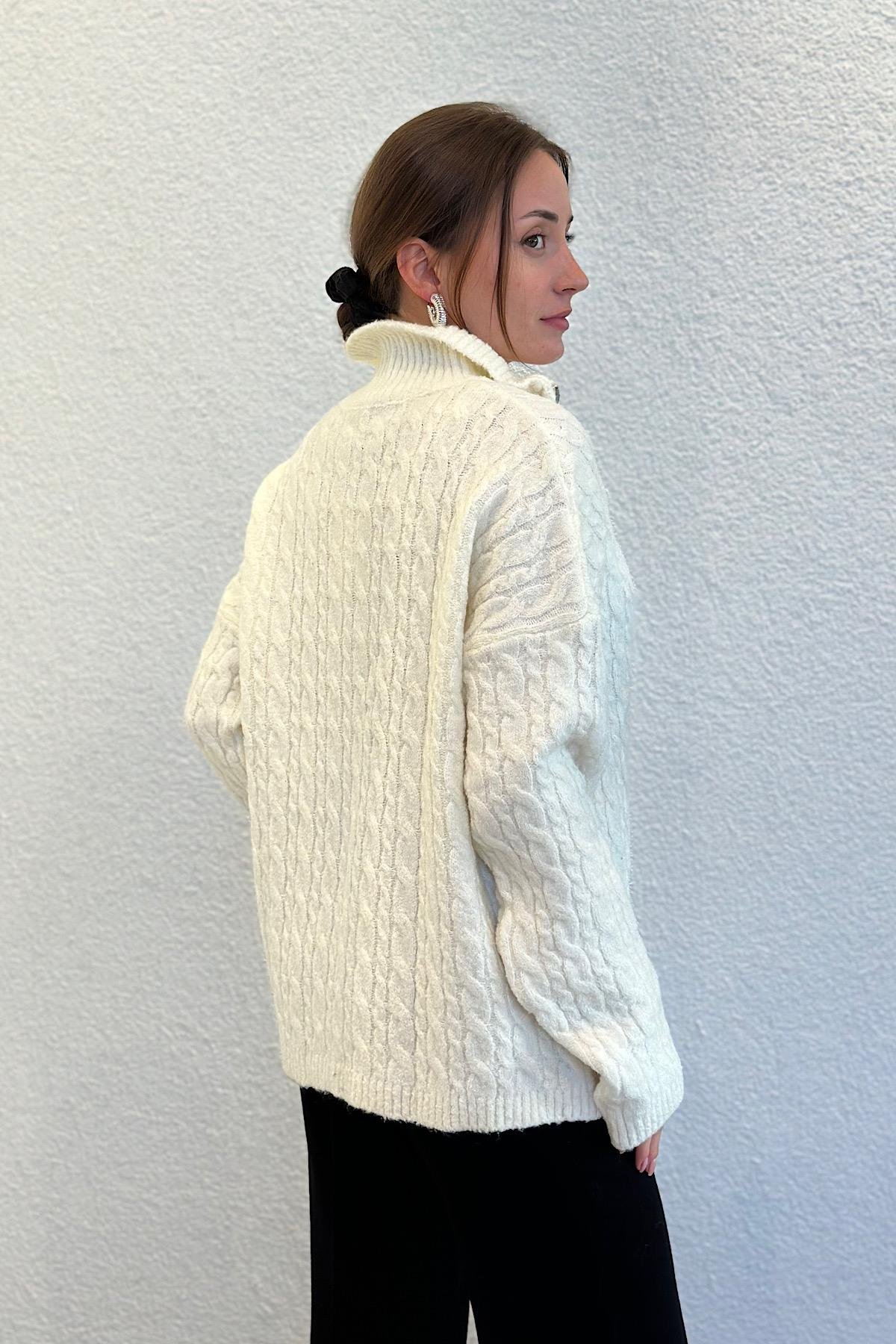Oversize Yünlü Yakası Fermuarlı Premium Triko Kazak (25KGUSTFM43121)